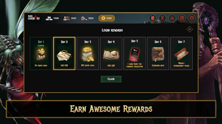Пътешествието в Dark Country е изпълнено с възможности за слава и награди. Включете се в седмични турнири, за да изкачите сезонните класации и да докажете своята майсторска класа. Всеки четиримесечен сезон предлага нови предизвикателства и щедри награди, очакващи най-добрите играчи. Натрупвайте точки опит, участвайки в класирани или некласирани PvP битки, или чрез успехи в турнири. Отключвайте нива по "Пътят на самотника" и печелете допълнителни бонуси, гарантирайки, че всяка изиграна партия ви води по-близо до нови върхове. Присъединете се към Dark Country и оставете своя отпечатък в мрачния готически свят!