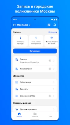 Представете си, че имате пълен контрол върху здравните си срещи директно от мобилното си устройство. Това приложение е вашият надежден асистент за управление на здравните ви нужди в Москва. Създадено да опрости достъпа до медицински услуги, то ви позволява лесно да записвате час за преглед, да управлявате съществуващите си посещения и да преглеждате ключова медицинска информация, всичко това на едно място. Край на дългото чакане и излишните телефонни разговори – вашата здравна грижа е на една ръка разстояние.
