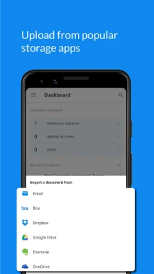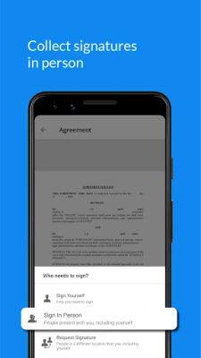С Signeasy всички ваши нужди от електронен подпис са покрити. Лесно можете да създадете своя подпис, като го нарисувате или импортирате, след което да го добавите към всеки документ. Приложението ви позволява също така да попълвате инициали, дати, имейл адреси, изображения или всякакъв друг текст – например адрес или телефонен номер. Изпращайте документи за подпис до колеги, партньори или клиенти по имейл, независимо дали те ползват Signeasy или не, и получавайте известия в реално време, когато документът е отворен или подписан. За бързо изпълнение на договори, можете дори да събирате подписи на място, директно на вашето мобилно устройство или таблет. За максимално удобство, Signeasy се интегрира безпроблемно с любимите ви облачни хранилища като Google Drive, Dropbox, Box и OneDrive, улеснявайки импортирането и съхранението на вашите подписани файлове.