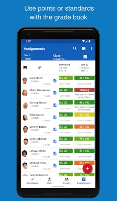 С TeacherAide Pro вие имате пълен контрол върху динамиката на класа. Създавайте детайлни схеми на местата, генерирайте изчерпателни отчети за напредъка на учениците и бързо идентифицирайте тези, които се нуждаят от допълнително внимание. Приложението безпроблемно синхронизира списъците с ученици от Google Classroom, осигурявайки актуална информация. Използвайте гъвкавите системи за оценяване, базирани на точки или стандарти, за да отразявате най-точно постиженията на вашите възпитаници.