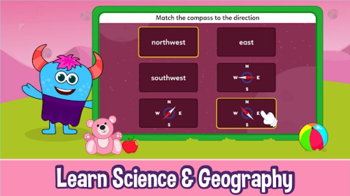 Потопете се в свят на интерактивни и иновативни образователни игри! Second Grade Learning Games предлага уникален формат "4 в 1", обхващащ английски език, математика, природни науки и география, всичко в едно цялостно преживяване. Всяка игра е изпълнена с живи цветове, очарователни анимации и забавни герои от анимационни филми, които задържат вниманието на децата и ги мотивират да учат. Разнообразието от задачи и приятната фонова музика превръщат всяка учебна сесия в истинско забавление. Нещо повече, приложението работи напълно офлайн, осигурявайки непрекъснато обучение по всяко време и навсякъде.