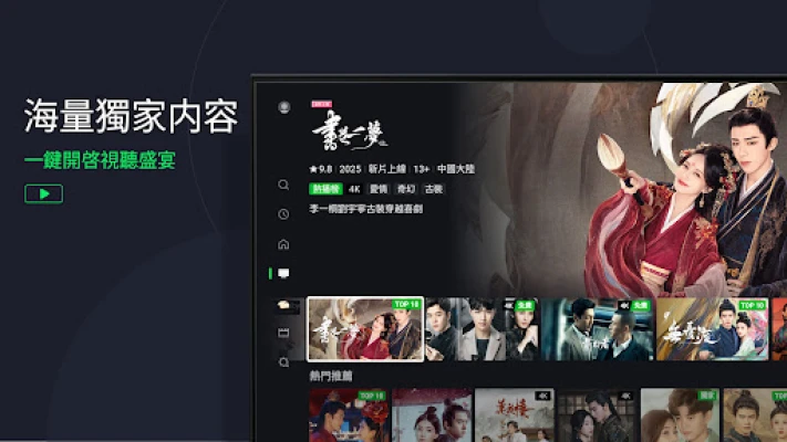 iQIYI愛奇藝(TV版) ви представя свят от ексклузивни и популярни оригинални видеоклипове. Открийте несравнимо плавно възпроизвеждане, интуитивен интерфейс и многоезични субтитри, които подобряват разбирането на съдържанието.